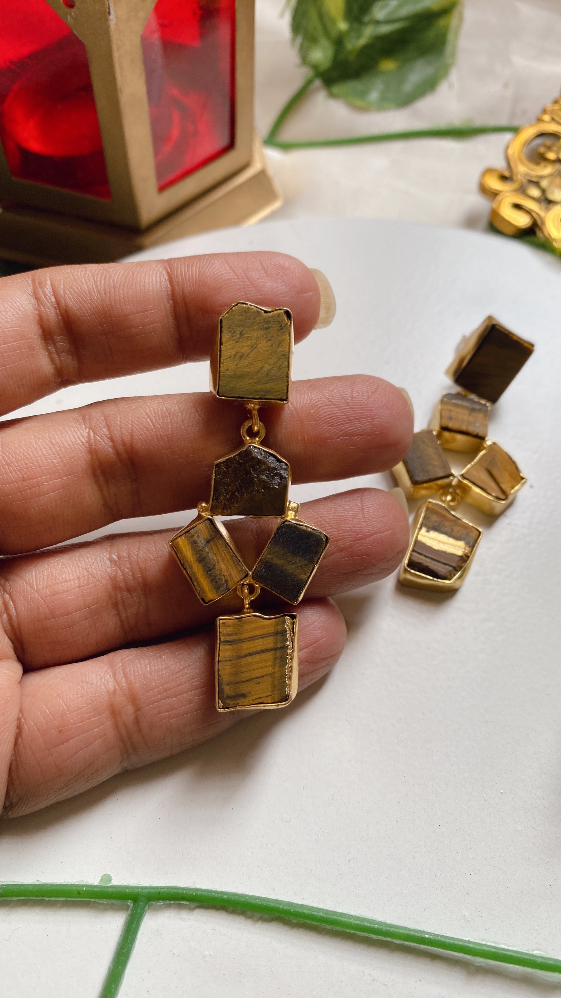 Arya Raw Uncut Stone Earrings - Coffee Brown